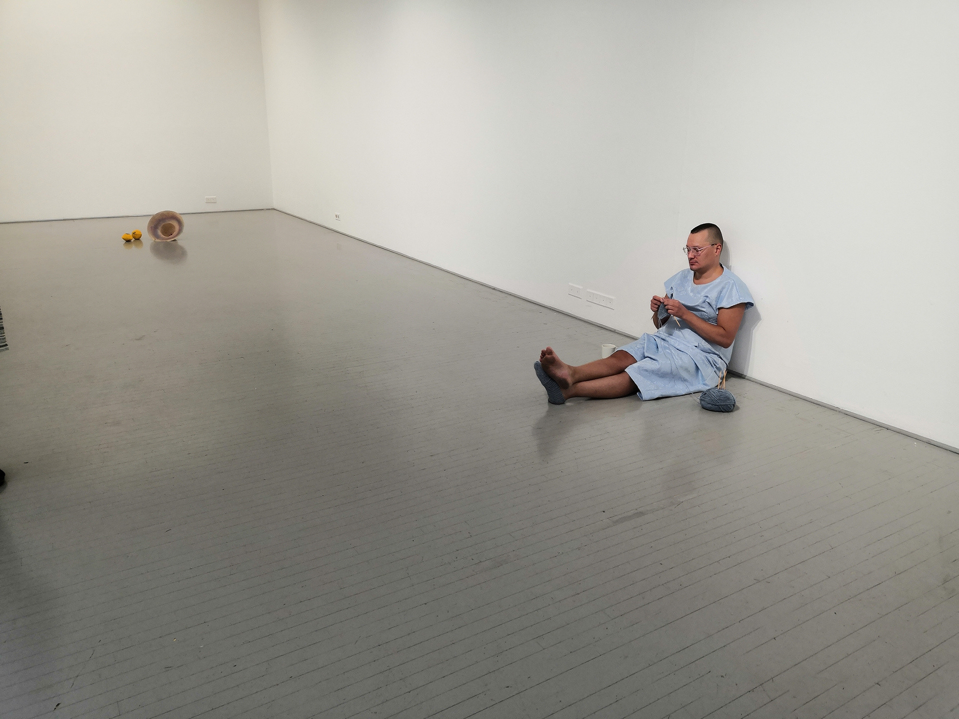In the first performance, I knitted a wool sock to replace the missing one during one day of the exhibition.